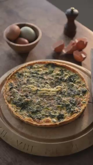 Scatter half the grated cheese over the base of the pastry case, then add the spinach and broad beans. Pour over the egg and cream mixture. If needed, gently stir to distribute the filling evenly, taking care not to damage the pastry.